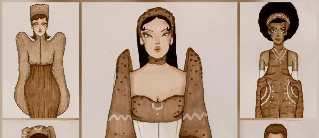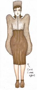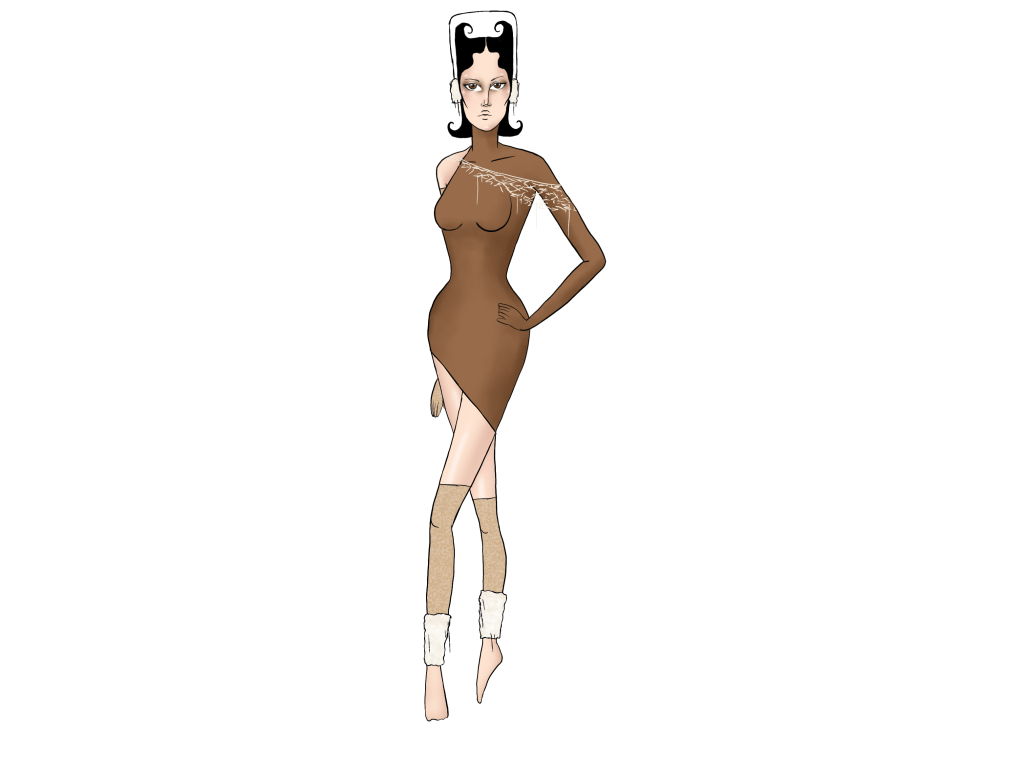 Lastly when it came to the designing process, I sketched out a final idea for my dress and also decided to add a choker which I felt would tie the look together nicely. The idea with the choker is that it would be interchangeable in how you styled it as it could also be a tie.